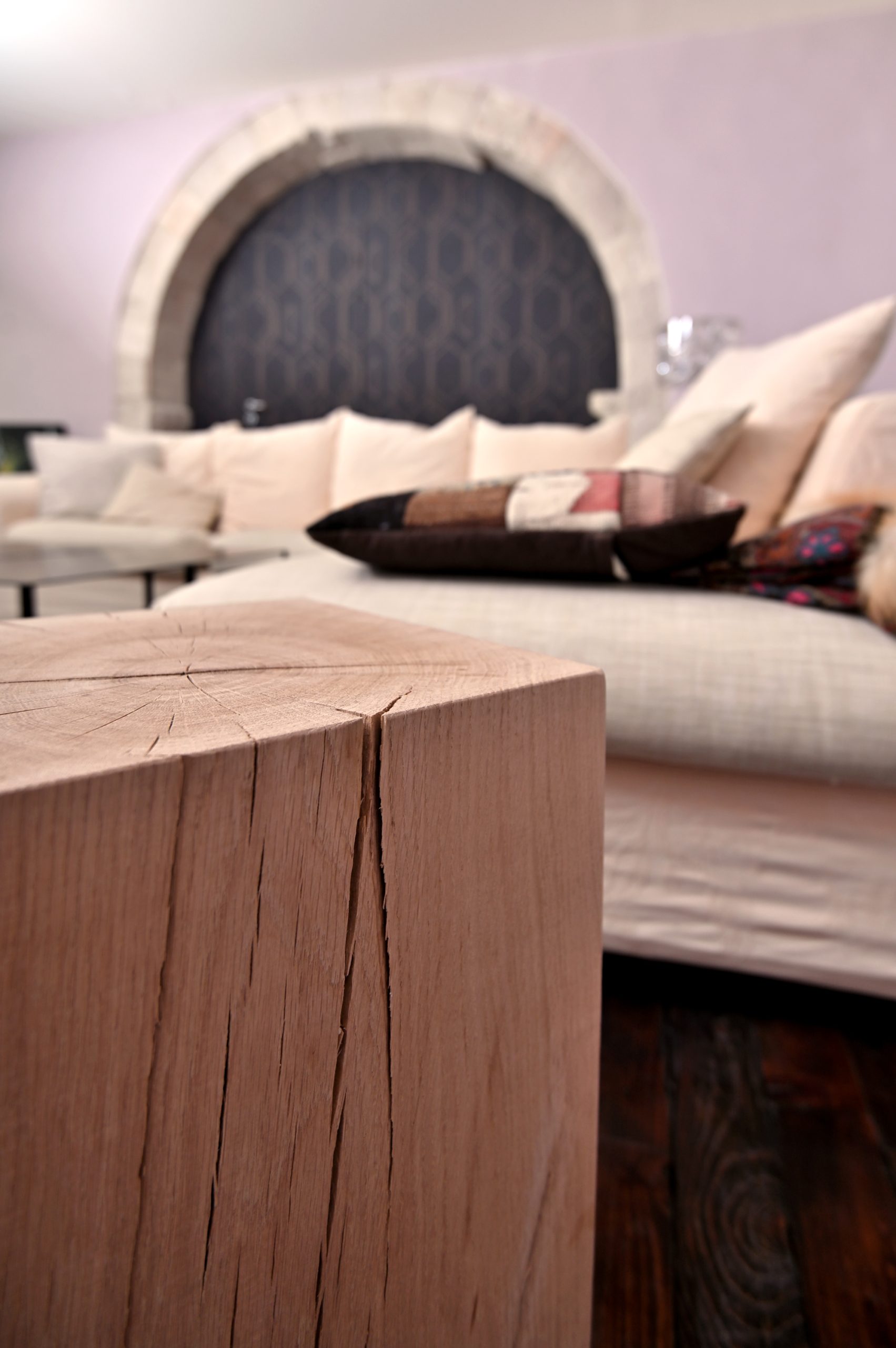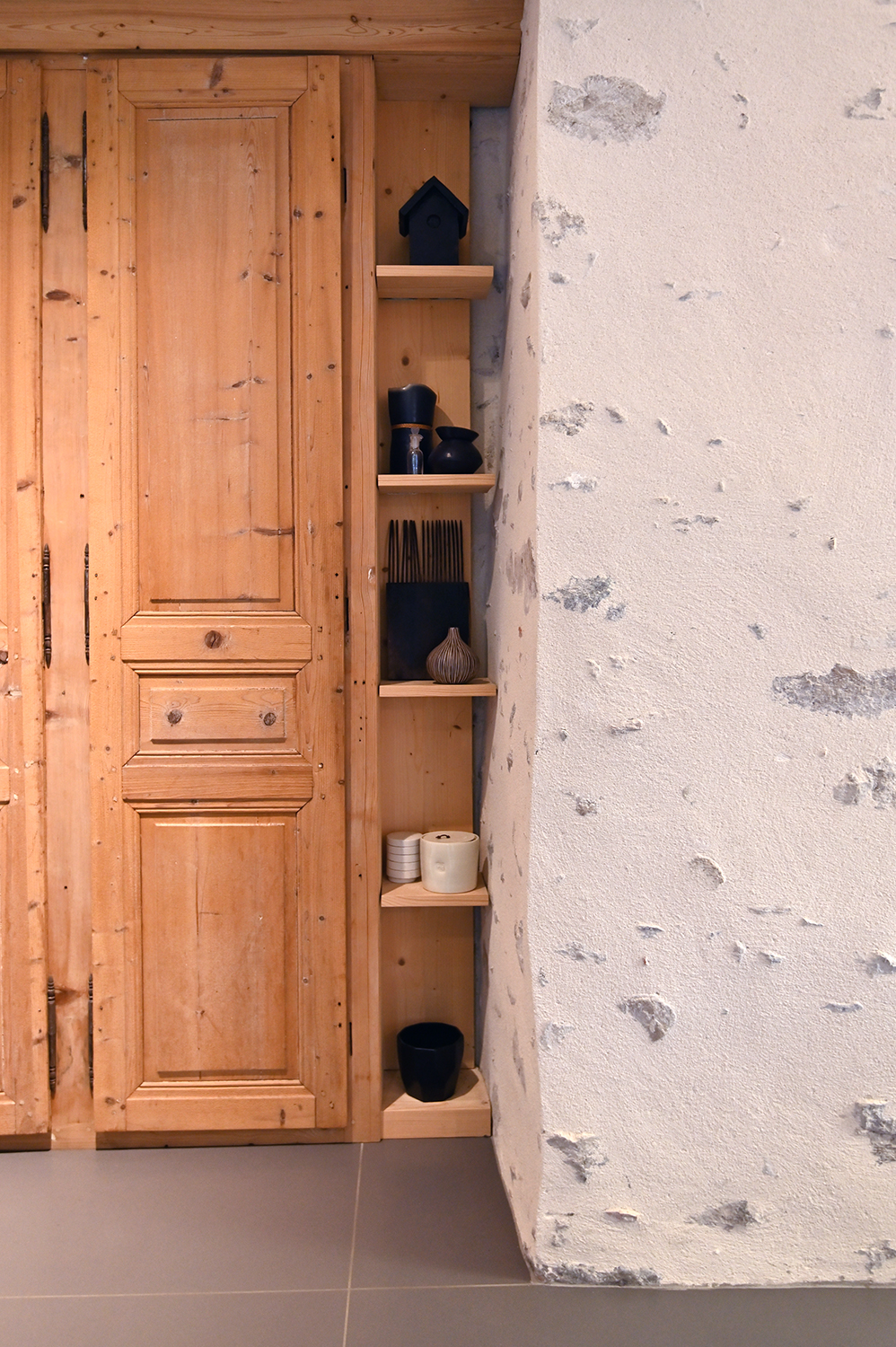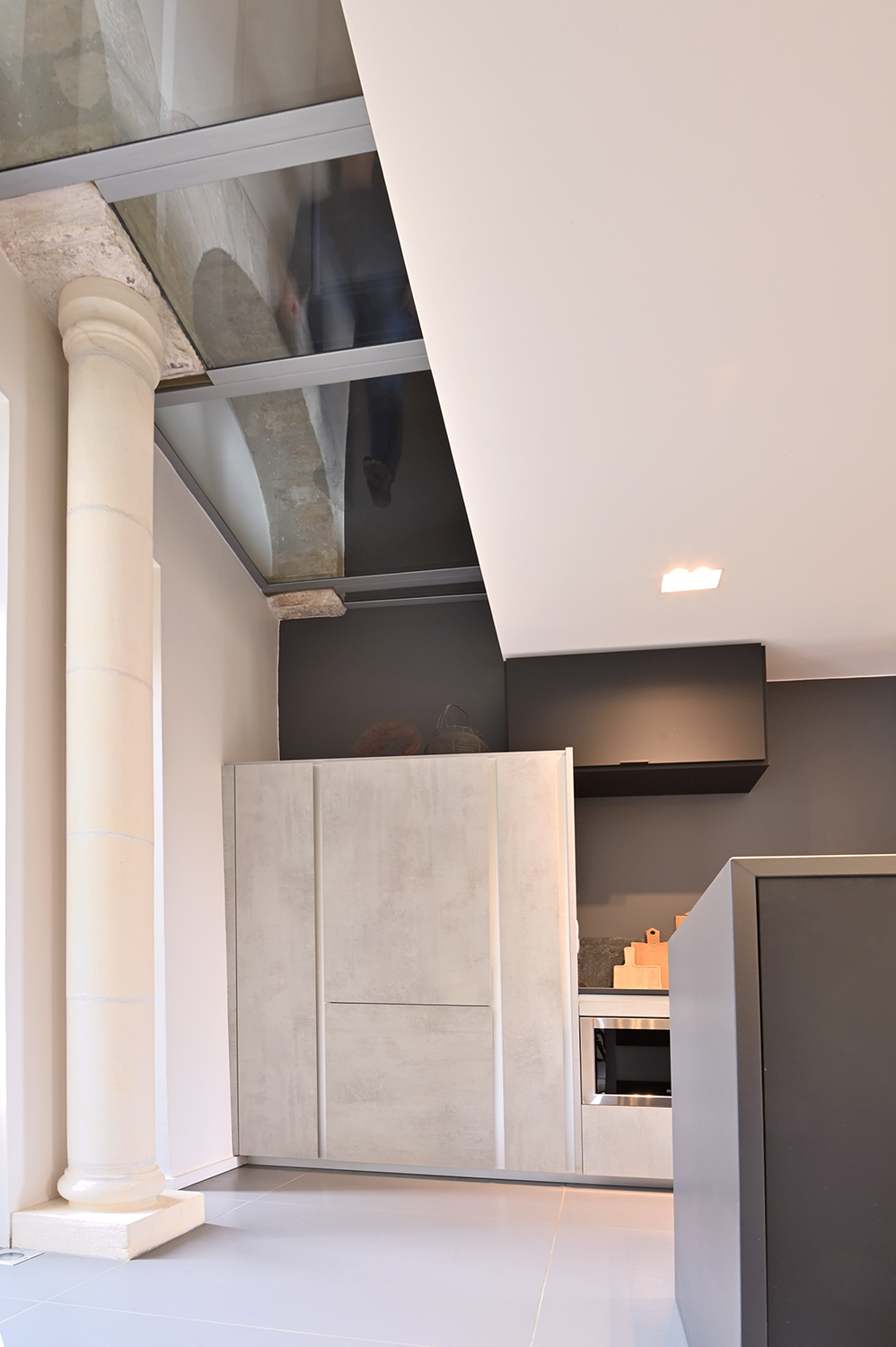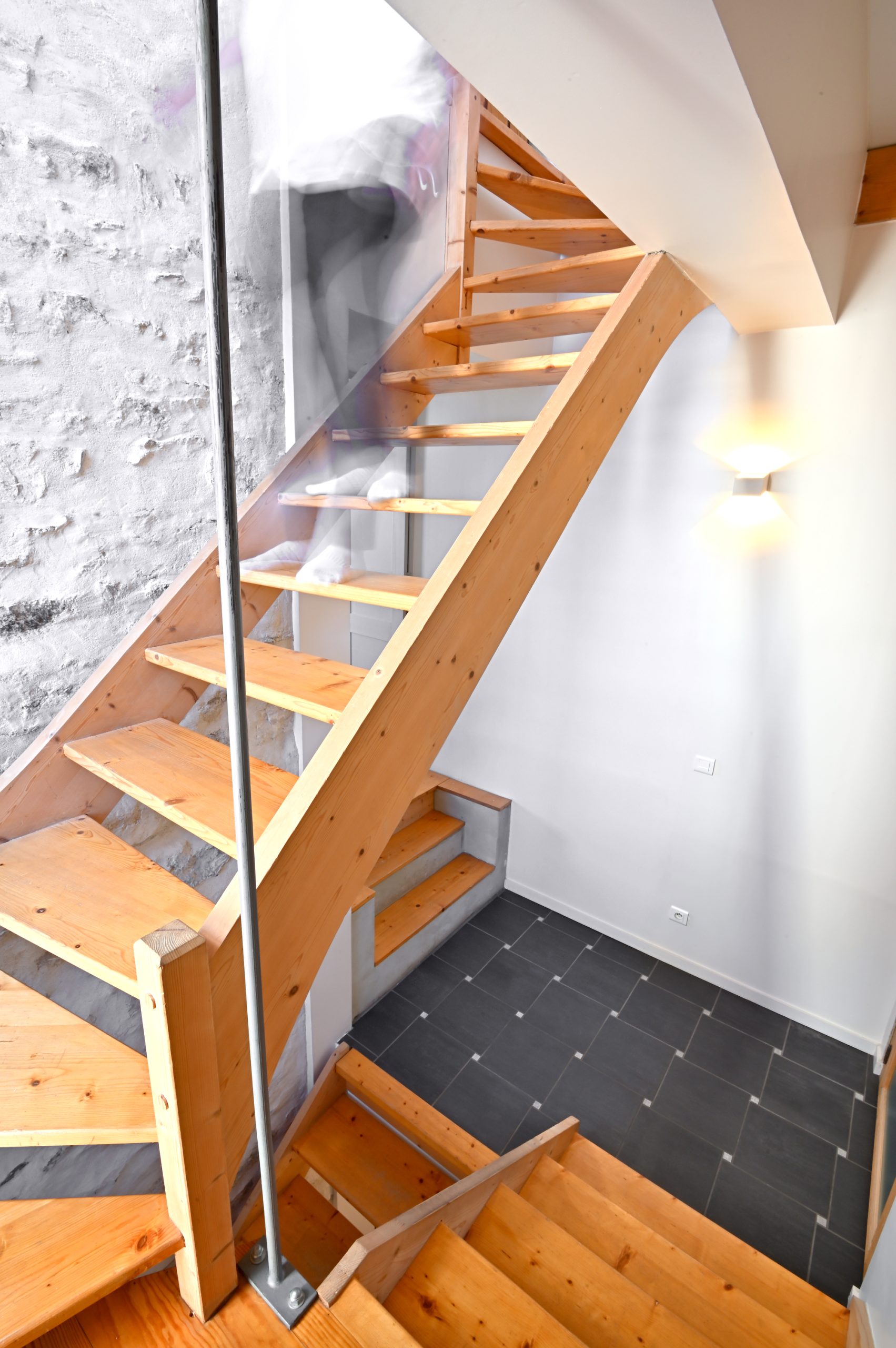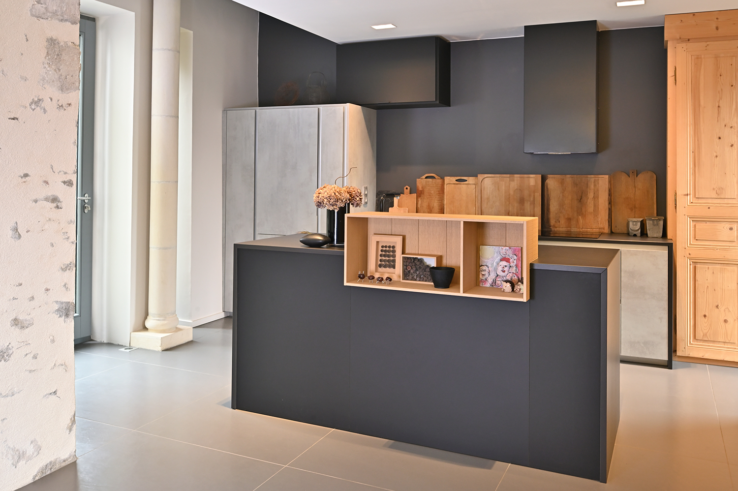 Apporter une touche contemporaine et valoriser le patrimoine existant. Le parti pris a été de laisser passer le regard au travers des percements existants ou créés et de recycler les matériaux encore présents.