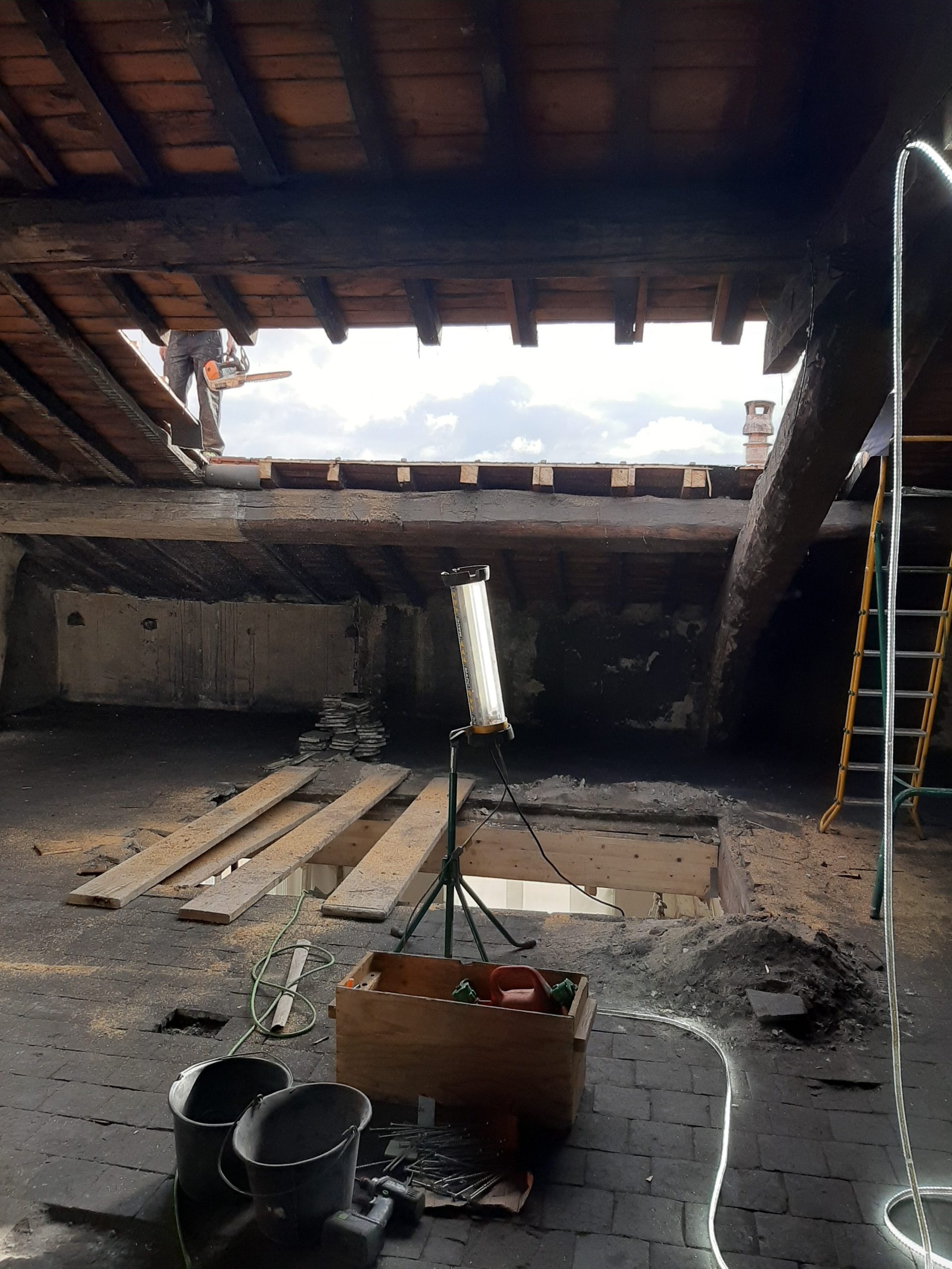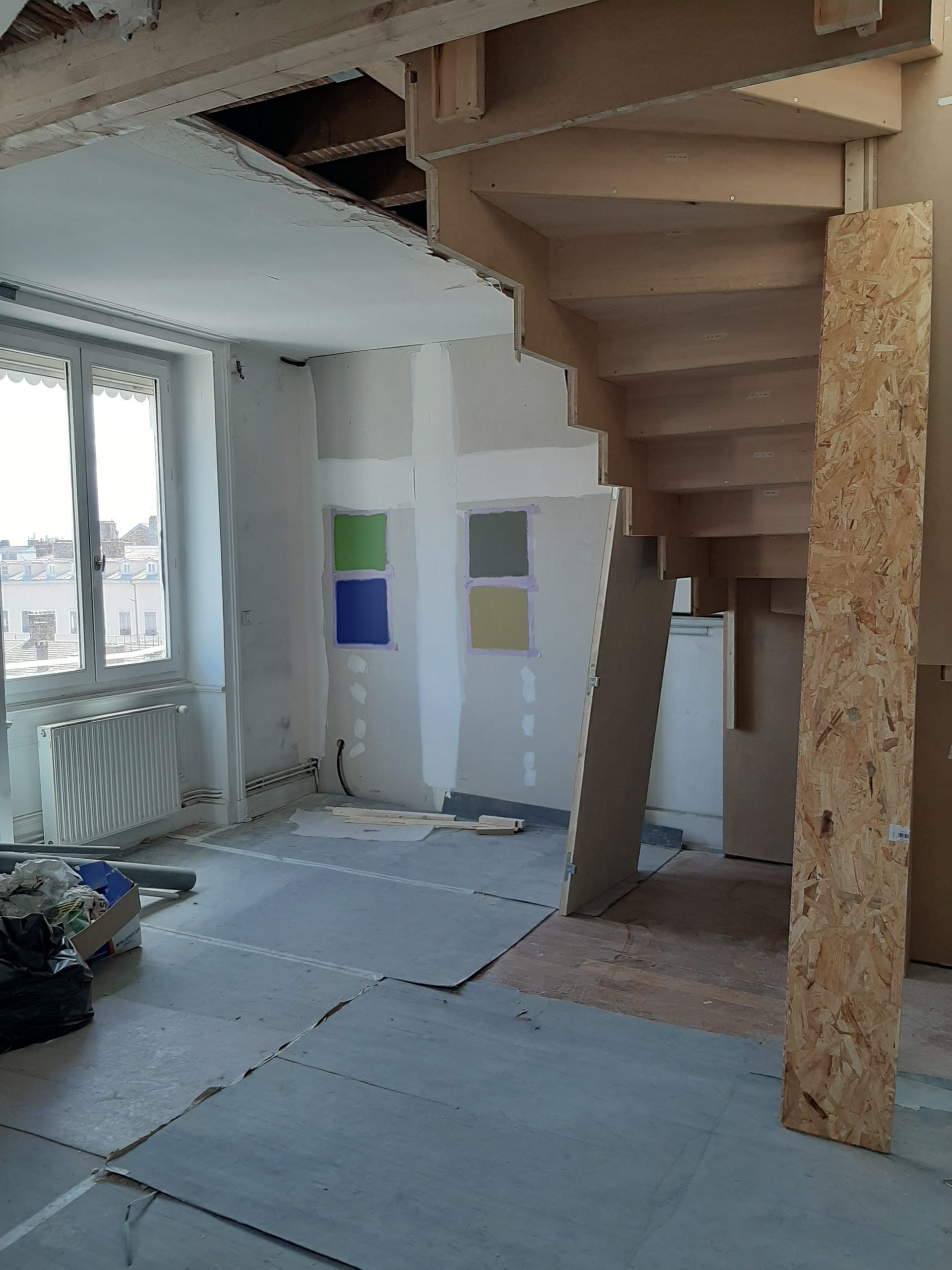 Appartement en dernier étage d’un immeuble du 19ème siècle et des greniers situés en combles achetés dans le cadre du projet.