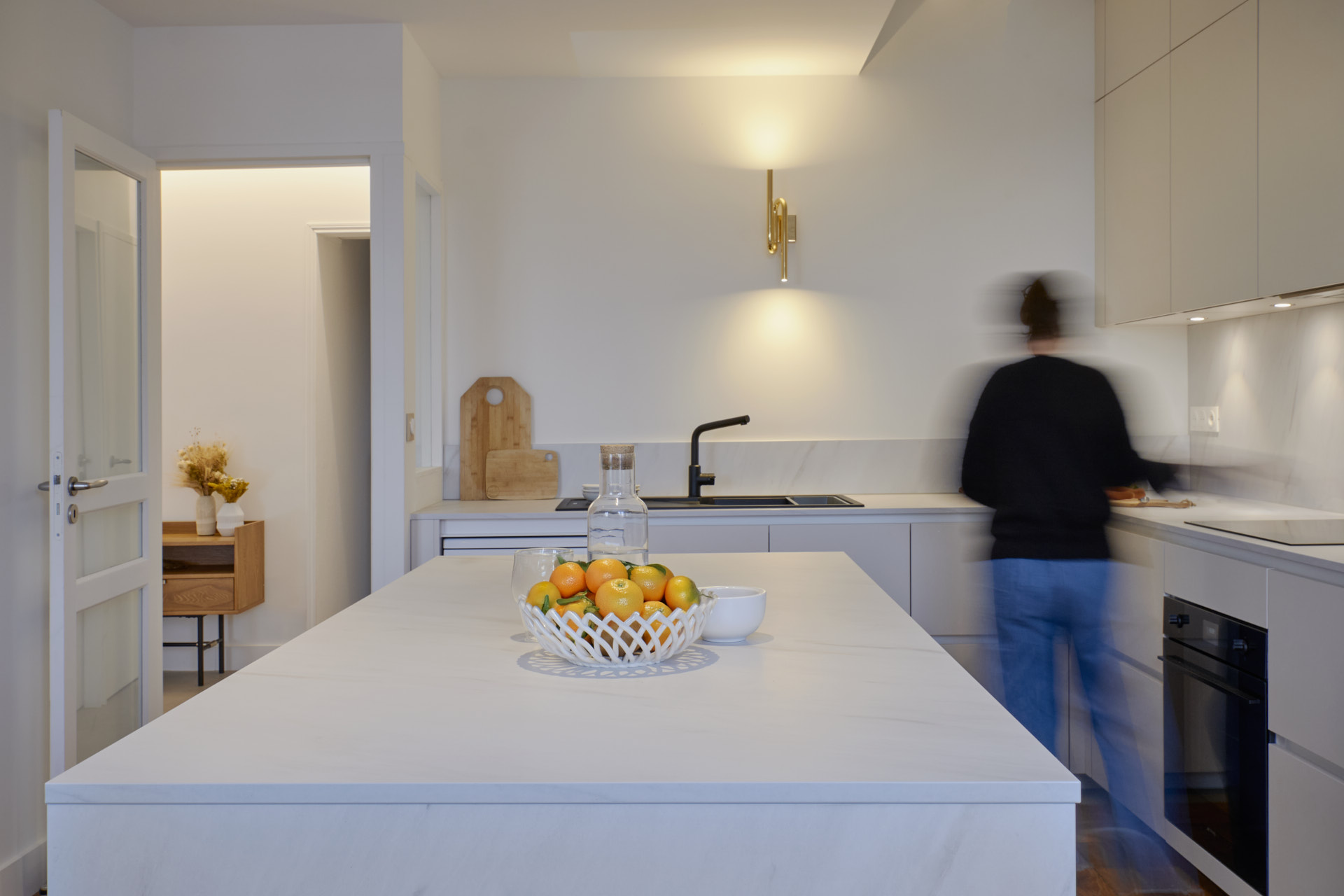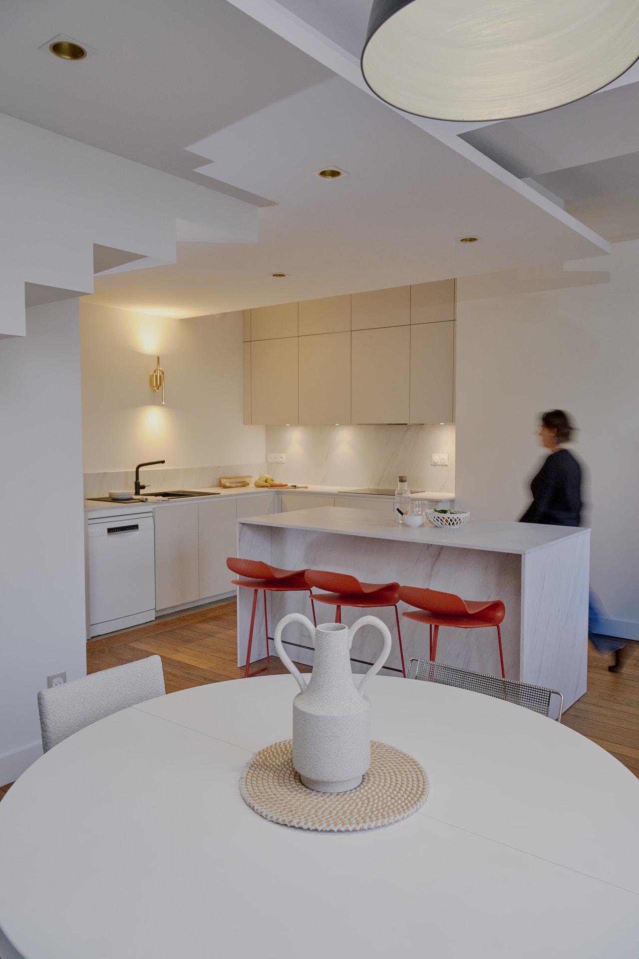 Un travail de composition des espaces à partir de la verrière créée. Dif
